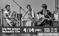 独自のポップサウンドで人気を集める「big the grape(ビッグ・ザ・グレープ)」=写真上=のアコースティック・ライブが14日、名張市夏見の「れんが亭」で催される。