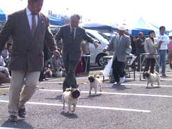 ![]() 名犬が集まったドッグショーの審査風景(名張市総合体育館駐車場で) |