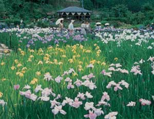 初夏の訪れとともに花しょうぶの競演が開幕\。奈良県宇陀郡室生村滝谷の「滝谷花しょうぶ園」が、一年で一番にぎわうシーズンを迎えている。約三万三千平方メートルの敷地には六百種百万本の花しょうぶが植栽され、六月上旬から七月上旬にかけては花しょうぶとあじさいが満開。初夏の園内は家族づれなどの入場客であふれかえる。 同園の開設は十九年前。一帯は土壌と水源に恵まれ、「菖蒲谷」とも呼ばれた花しょうぶの名所。この山里の村おこしをめざし、地域の有志が休耕田を利用してオープンしたのが始まりだった。いまでは花しょうぶの里として広く知られ、奈良や三重、愛知、大阪を中心に全国から愛好家が訪れる。 三月末の枝垂れ桜に始まり、芝桜、てっせん、あじさい、花しょうぶと、季節それぞれの「花のメドレーリレー」はリピーターを多く集め、六月十七日から二十七日までの「蛍の夕べ」のほか、撮影会、お茶会、草もちつき大会などファンをもてなす企画も多彩。農家の食卓からも姿を消した山野草など、「食」もたっぷり楽しめる。 緑の大自然の中でリフレッシュするにはうってつけの空間だ。入園料は大人八百円、小人四百円。開園は午前九時から午後六時(「蛍の夕べ」は午後九時まで夜間営業)。問い合わせは同園(電話0745・92・3187)へ。